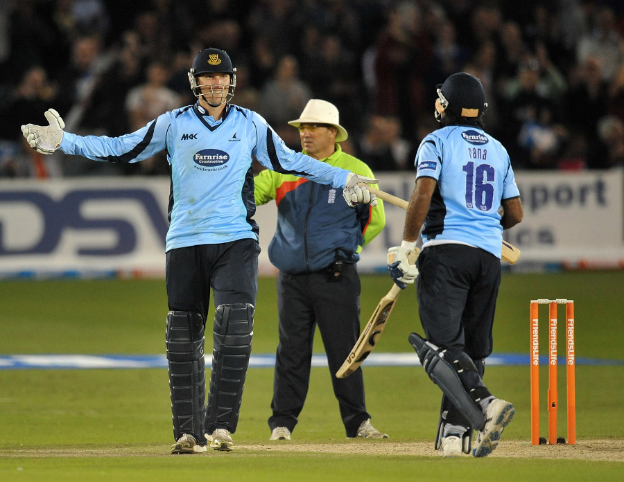 Craig Meschede and Murali Kartik did their best to steer the visitors to a healthy total, but Naved-ul-Hasan came in to the attack and soon dismissed the former. When Rayner caught Gemaal Hussain of the bowling of Wright, Somerset were all out for a humbling 90 off 17.2 overs. Monty Panesar bowled smartly and Wright’s figures of 1-9 from three overs highlights his ability in this form of the game, but it was Rayner who took the plaudits.