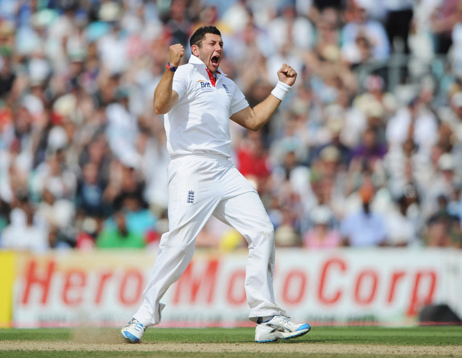 Such has been the dominance of the England seamers, Graeme Swann had contributed relatively little to the series before this match: four wickets for 321 runs. However today he demonstrated why and how he is the world’s best spinner with long spells of fine bowling. Although India managed to bat until the afternoon before losing a wicket, he always threatened, particularly against Sachin Tendulkar, who was dropped off his bowling by Alastair Cook at short leg. Once the 144-run fourth wicket partnership had been broken when Swann bowled Amit Mishra, the rest of the wickets fell in an ungainly and embarrasing heap; the off spinner took four to finish with 6-103 and 9-208 in the match. In doing so, he passed 150 Test wickets and is now amongst the top 20 English Test wicket takers of all time.