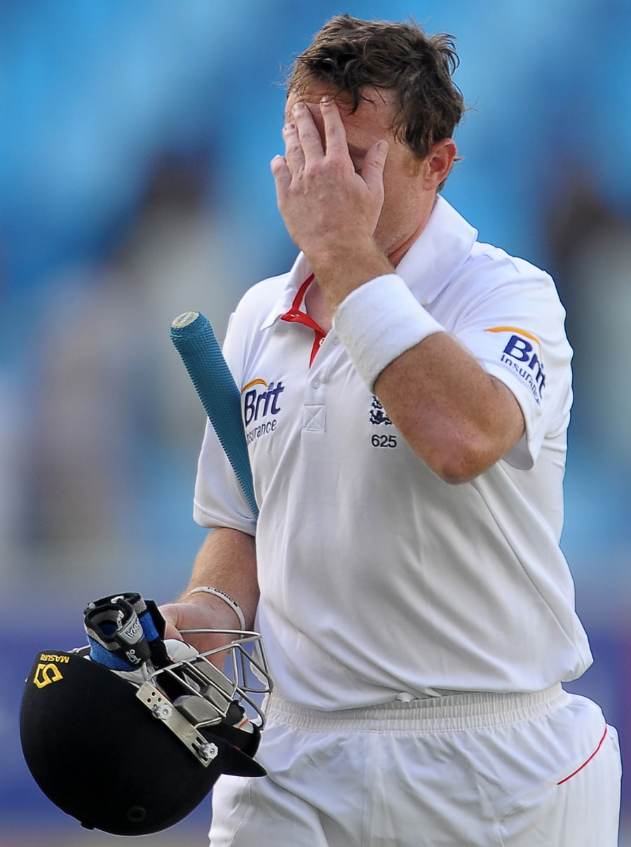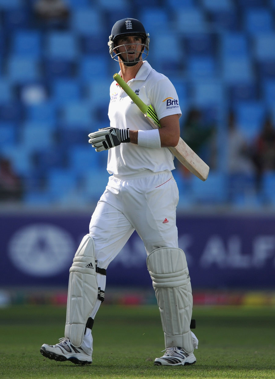 Here Kevin Pietersen fails to remove helmet or gloves, but the immaculately-tucked bat and perplexed facial expression is another classic pose that is proudly English.