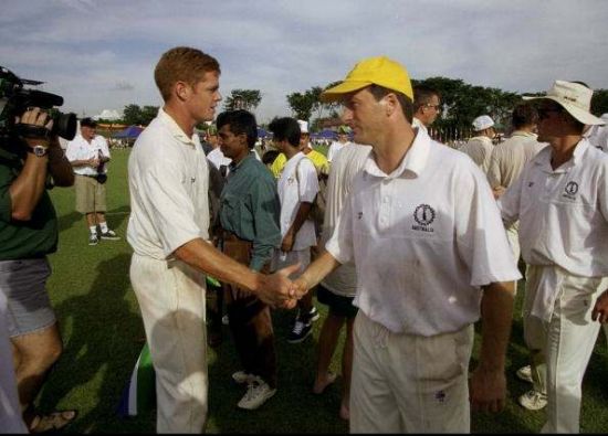 The first semi-final saw South Africa bundle Sri Lanka out for 130. With the game, and a spot in the final, looking to be in the bag, South Africa responded with characteristic form and proceeded to start choking like an English footballer faced with a penalty shoot-out. The South African wickets tumbled, and at 96/9 all looked over. However, a tenacious last wicket stand between Nicky Boje and Alan Dawson saw the South Africans limp over the line. The other match was a more straight forward affair, as the Kiwis, likewise desperate to conform to expectations, were annihilated yet again at the semi-final stage of an international tournament. Put into bat New Zealand were rolled for 58, a total Australia took all of ten overs to pass, giving them the rest of the afternoon to catch up on learning the words to Advance Australia Fair for their inevitable gold medal presentation.