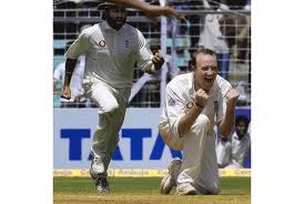 To Udal’s first ball of the 44th over, MS Dhoni charged forth and swung his bat: the ball landed somewhere near the hapless Panesar at long-off – a lucky escape for the last recognised batsman. Three balls later Dhoni repeated his blunder and this time Panesar pocketed the catch, to general disbelief. At 92/7, the match was all but over. Then Harbhajan Singh top-edged a sweep to Hoggard and Flintoff reversed a ball to Yuvraj Singh that Collingwood claimed easily in the slips. And finally Munaf Patel fell into the ring of Udal’s fire, swinging him into safe hands in the deep – Hoggard again: 100 all out. Udal – in his final Test – finished with an unlikely 4/14; Flintoff 3/14. By taking an incredible seven wickets in 15.2 overs, England had won by 212 runs, their first victory in India since 1985.