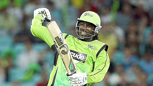 Chris Gayle celebrates reaching double figures
