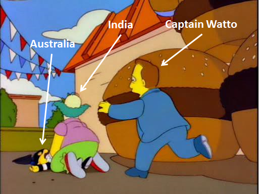 While the India vs. Australia series has been a lot of fun (we’re talking about the Super Mario Kart end of the enjoyment scale here), there’s a feeling that perhaps we’ve focused too much on the pleasure aspect – Australia getting utterly spanked – rather than talking about the real issues of the series. And when we say a feeling, we mean a nasty note written in green ink and left on the fridge by Editor Steve, shortly before his latest jaunt around Europe to lambaste a terrible international football side. Hence we find ourselves having to actually try and write a grownup piece, rather than just dressing up player ratings with a series of pictures of low quality international footballers/drink drivers.