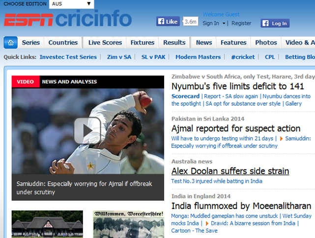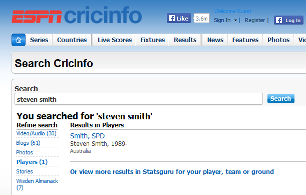 It does have notable and considerable strengths. As an online resource, it is peerless. Firstly, the statsguru database is more comprehensive than the poindexters amongst us could dream of. Its archive of results and scorecards is also pretty remarkable, although cricketarchive is probably more extensive. A better search facility would be useful as a means to navigating the site though. The other strength of the website is its collation of live scores (and results) from around the world. However this function could be more user-friendly (one annoyance is the difficulty to scroll quickly on scoreboards, and also the time it takes to switch from summary to full scoreboard, especially if several matches are opened in different tabs) and easier on the eye (we’ll plug http://www.birdfolk.co.uk/cricalltv.php whilst we’re discussing live scores). Also, the simple scorecards are now joined by match centres, which to us seem only to serve to slow the site down. There is far too much information on the page.